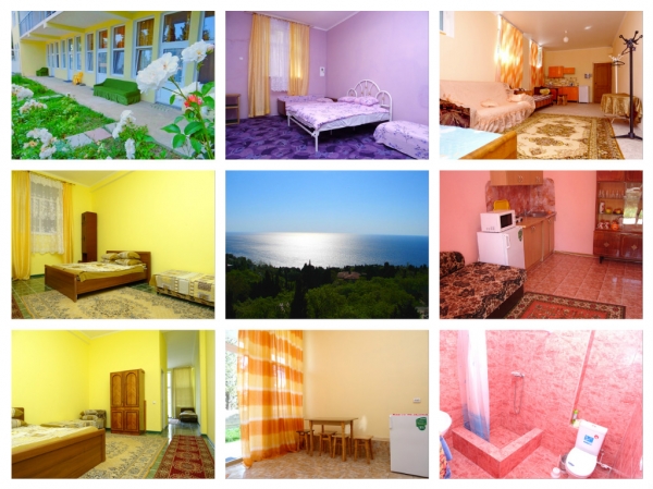 Гостевой дом «Панорамный» находится в тихой, зелёной зоне г. Алупка, ул. Шоссе Свободы, 12-Е. В каждом номере 2 комнаты с кухонным узлом, холодильником, телевизор, утюг, плитка, кухонные принадлежности, чайник, обеденный